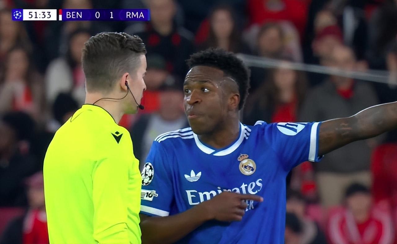 北京时间2月18日凌晨,欧冠1/8附加赛首回合,皇马客场挑战本菲卡。下半场,维尼修斯率先进球。不过,他在进球后选择罢赛,他向裁判投诉对手球员对他进行了种族歧视。