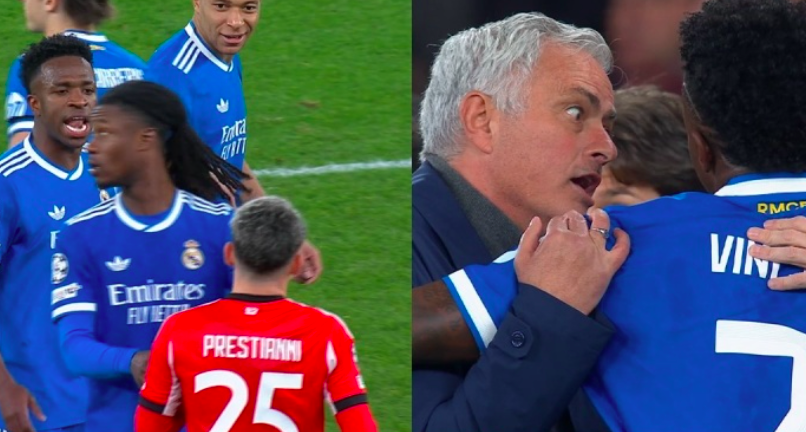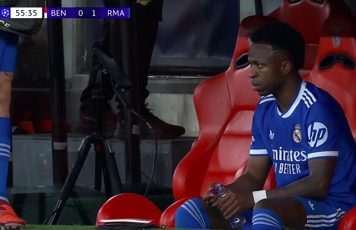 到了场边,维尼修斯还和本菲卡主帅穆里尼奥进行了交流,他贴着穆帅的耳朵说话,似乎是在告诉穆帅究竟发生了什么。